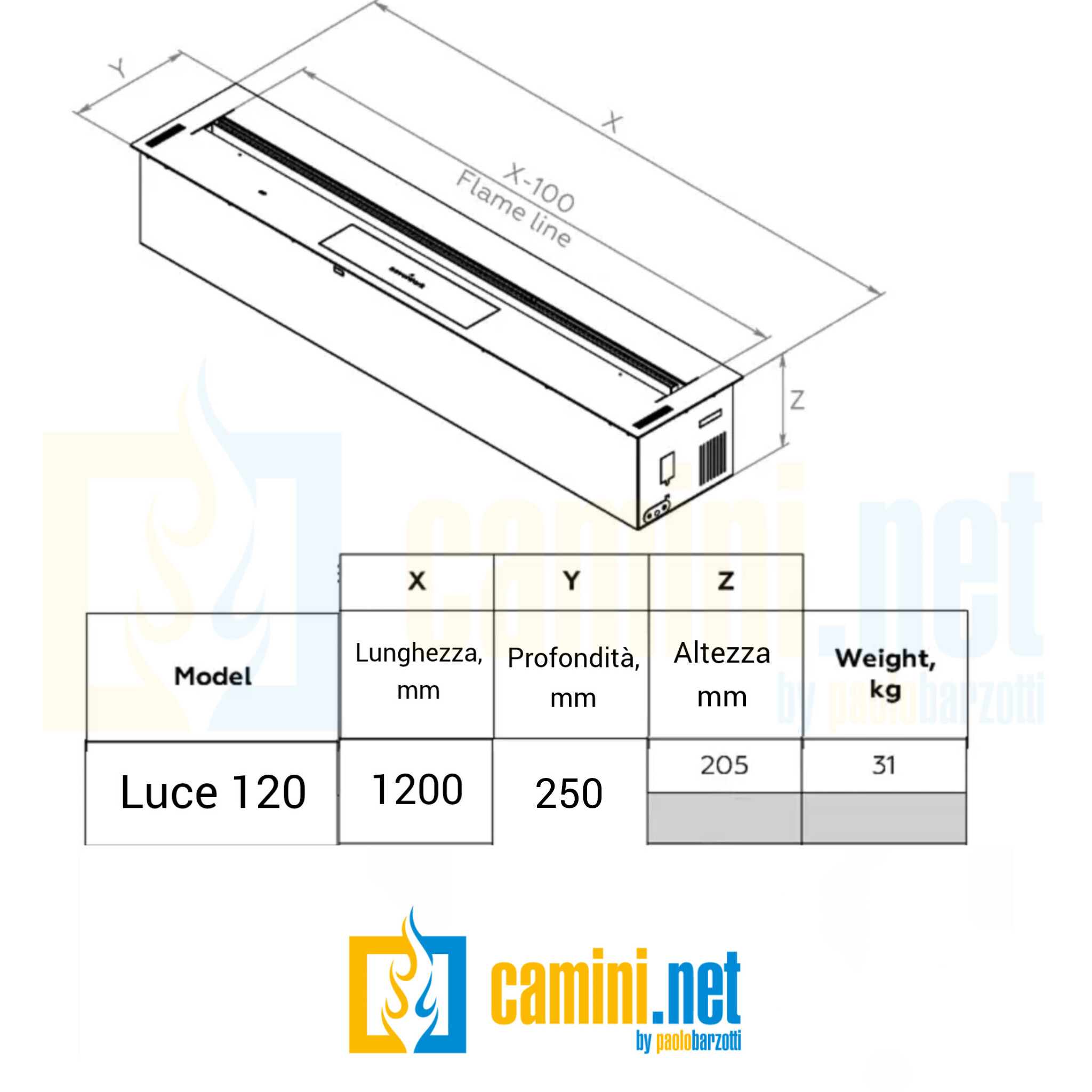 Il bruciatore a bioetanolo automatico Luce 120 unisce linee eleganti e tecnologia all’avanguardia, per regalare una fiamma naturale in grado di arricchire l’ambiente. Gestibile mediante APP o attraverso il nuovo sensore no-touch totalmente automatico, il camino a bioetanolo Luce 120 vi regalerà un’esperienza di utilizzo senza eguali. Il frontale con top nero in finitura lucida fornisce una perfetta superficie riflettente per esaltare il movimento continuo delle fiamme, esaltandone la bellezza. Grazie ai 5 livelli di intensità della fiamma regolabili, il camino a bioetanolo automatico Luce 120 offre una personalizzazione totale dell’esperienza visiva e termica, per adattarsi ad ogni esigenza. Il sistema di caricamento del bioetanolo tramite una pompa elettronica garantisce sicurezza e praticità, evitando rischi e semplificando l’uso quotidiano. Ideale per ambienti moderni e di design, il bruciatore a bioetanolo Luce 120 è pensato per clienti esigenti che cercano qualità, funzionalità e un tocco di eleganza nel proprio spazio.