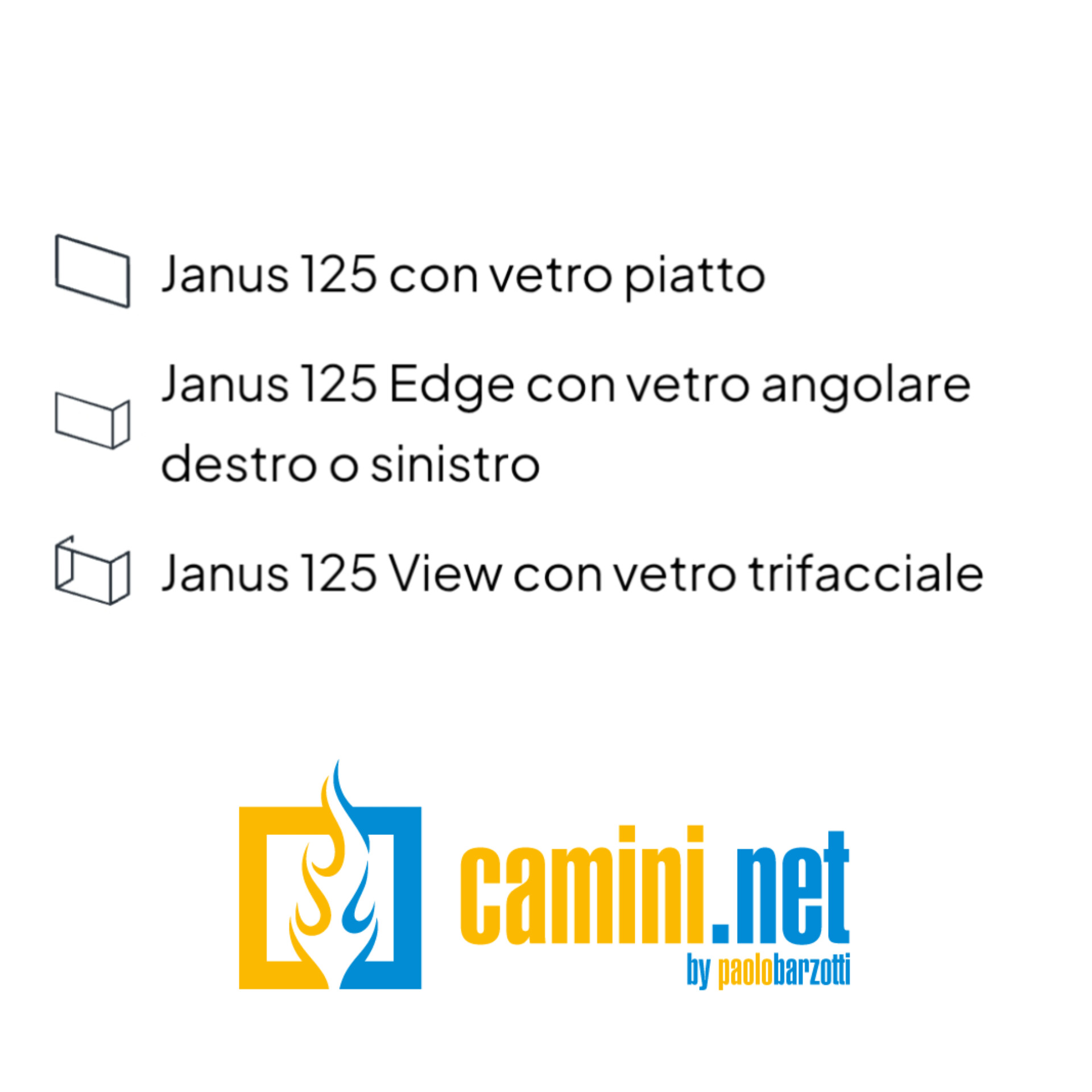 Il camino elettrico Janus 125 sfrutta una tecnologia di proiezione olografica in 4K per generare fiamme che prendono vita con un sorprendente realismo. Lo splendido set di ciocchi in vera legna stabilizzata con resina antipolvere e il vetro anti-riflesso contribuiscono a enfatizzare la resa grafica della fiamma. Il camino è dotato non solo di scenari fiamma, ma anche di un sorprendente scenario acquario, per poter sfruttare questo prodotto anche nei mesi più caldi dell’anno. Il camino elettrico Janus 125 è dotato inoltre di: – Telecomando per il controllo da remoto; – Supporti in acciaio inferiori per l’installazione. Come Optional questo camino può essere dotato di un sistema di riscaldamento con ventilazione frontale, con potenza variabile da 1 a 2 kW. Janus 125 può essere allestito in 3 differenti configurazioni: – Con vetro frontale; – Con vetro angolare a sinistra o a destra; – Con vetro trifacciale.