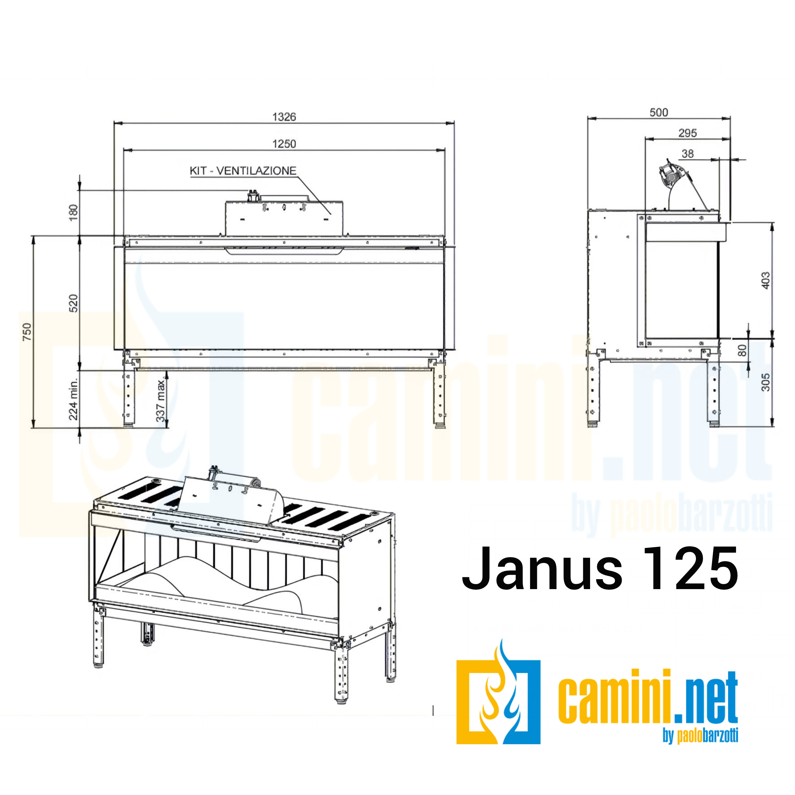 Il camino elettrico Janus 125 sfrutta una tecnologia di proiezione olografica in 4K per generare fiamme che prendono vita con un sorprendente realismo. Lo splendido set di ciocchi in vera legna stabilizzata con resina antipolvere e il vetro anti-riflesso contribuiscono a enfatizzare la resa grafica della fiamma. Il camino è dotato non solo di scenari fiamma, ma anche di un sorprendente scenario acquario, per poter sfruttare questo prodotto anche nei mesi più caldi dell’anno. Il camino elettrico Janus 125 è dotato inoltre di: – Telecomando per il controllo da remoto; – Supporti in acciaio inferiori per l’installazione. Come Optional questo camino può essere dotato di un sistema di riscaldamento con ventilazione frontale, con potenza variabile da 1 a 2 kW. Janus 125 può essere allestito in 3 differenti configurazioni: