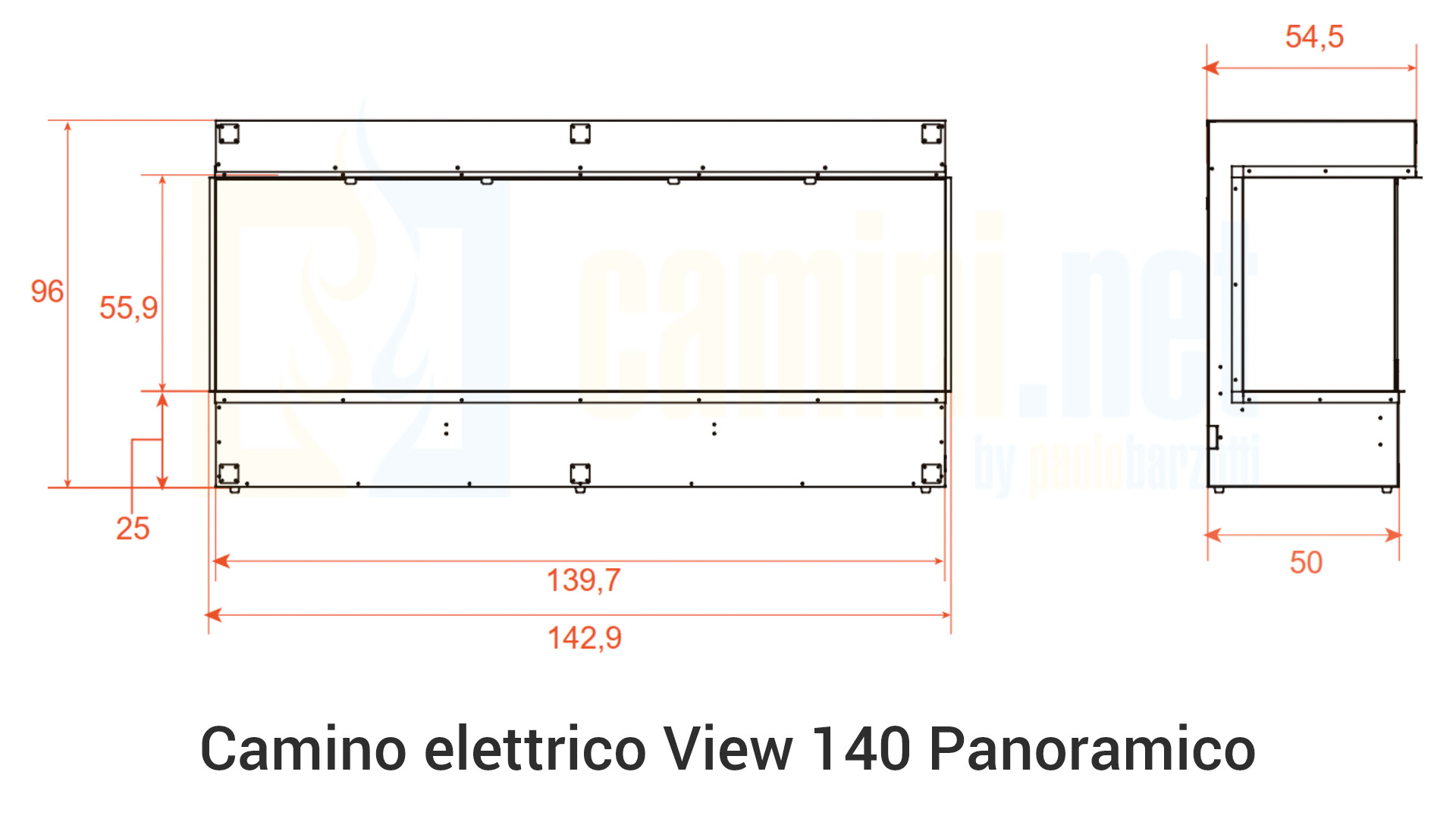 CAMINO IBRIDO ELETTRICO + VAPORE VIEW 140 PANORAMICO