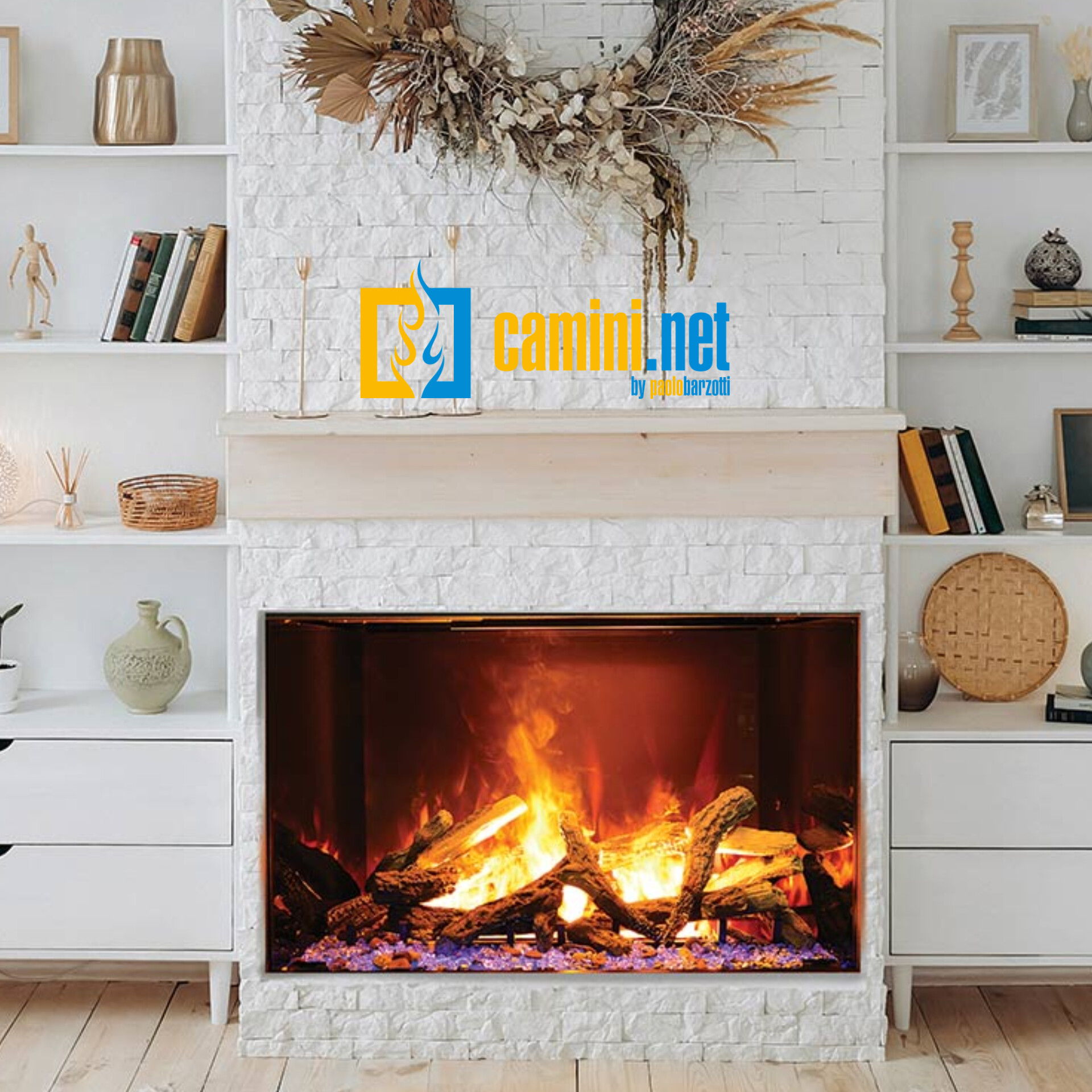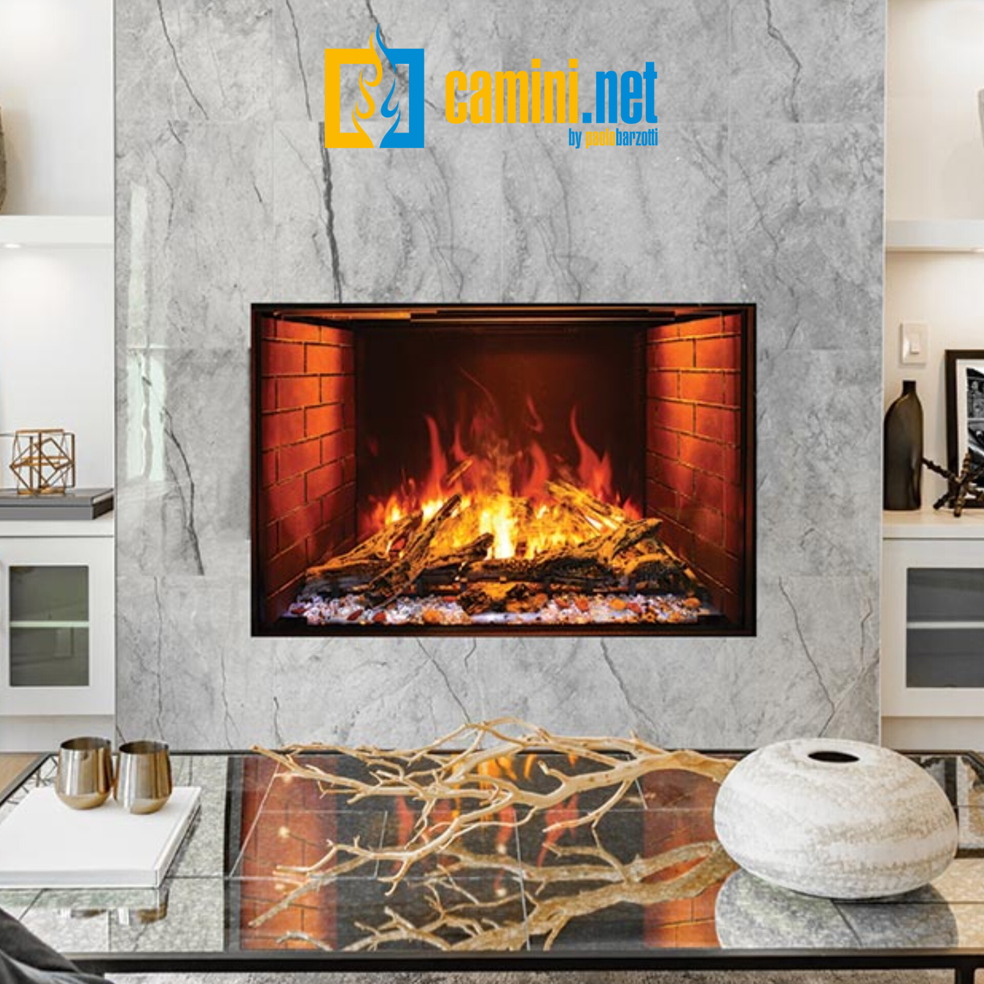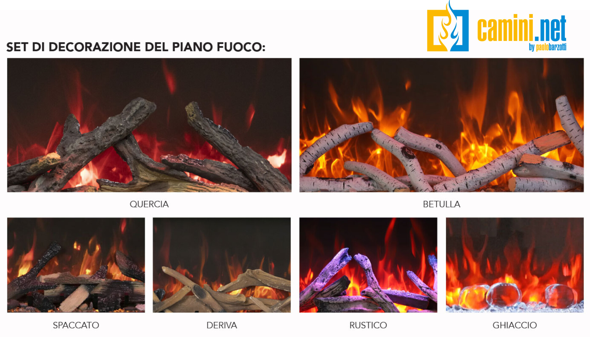 Sono inoltre disponibili ben 6 differenti kit di decorazione in ceramica a scelta tra: Betulla; Quercia; Spaccato; Deriva; Rustico; Ghiaccio. Il camino è dotato di un sistema di riscaldamento con resistenza elettrica la cui potenza può variare tra 1 e 2 kW. Le due differenti tecnologie possono essere utilizzate anche singolarmente per poter sfruttare al massimo il camino anche nei mesi più caldi dell’anno. Di serie il camino è dotato di: Telecomando con cronotermostato; Wi-Fi; Bluetooth e altoparlante; Sistema rilevamento finestra aperta; 3 livelli velocità delle fiamme; Diverse colorazioni per il letto di braci; kit di collegamento alla rete idraulica e pompa per serbatoio esterno (serbatoio non incluso).