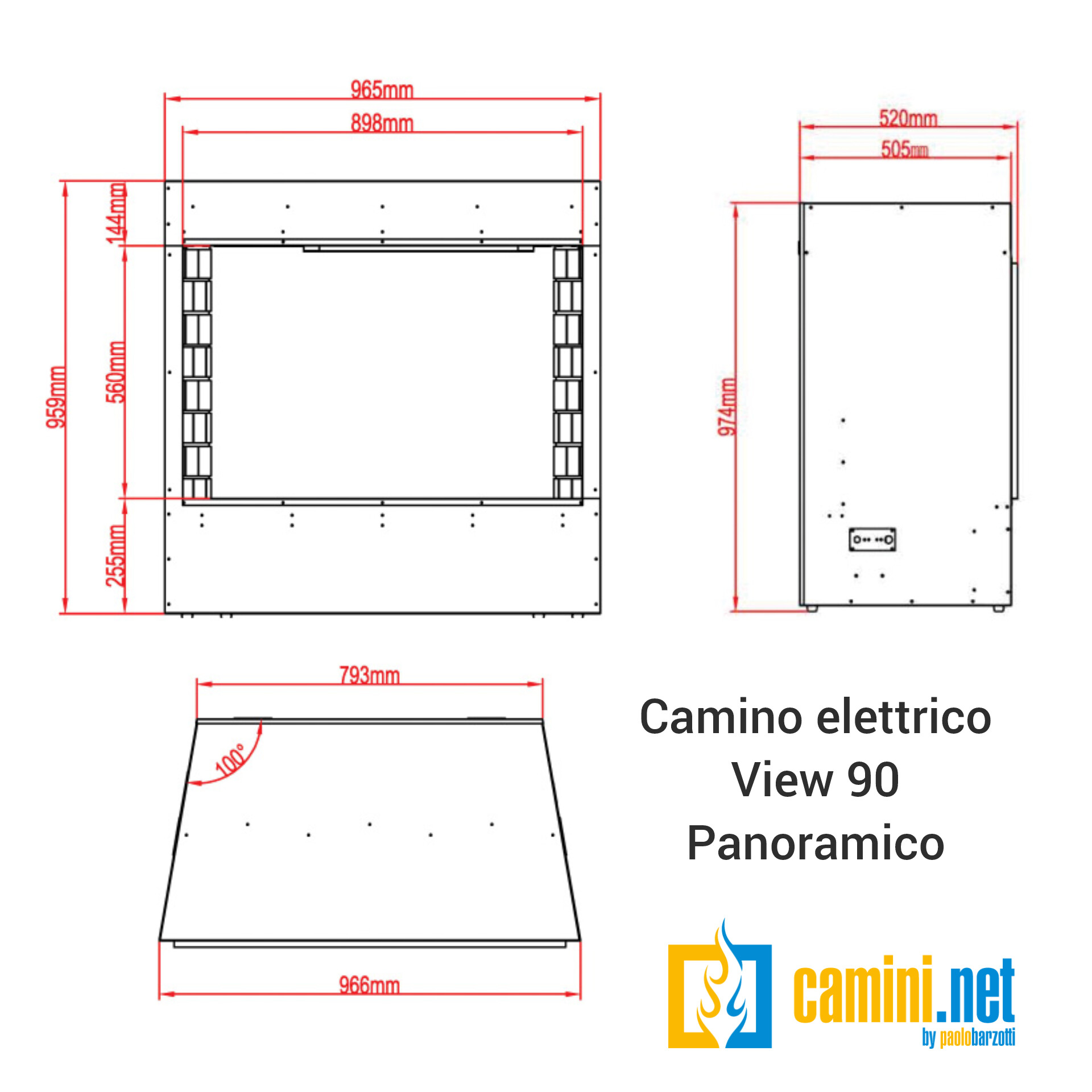 CAMINO IBRIDO ELETTRICO + VAPORE VIEW 90 PANORAMICO
