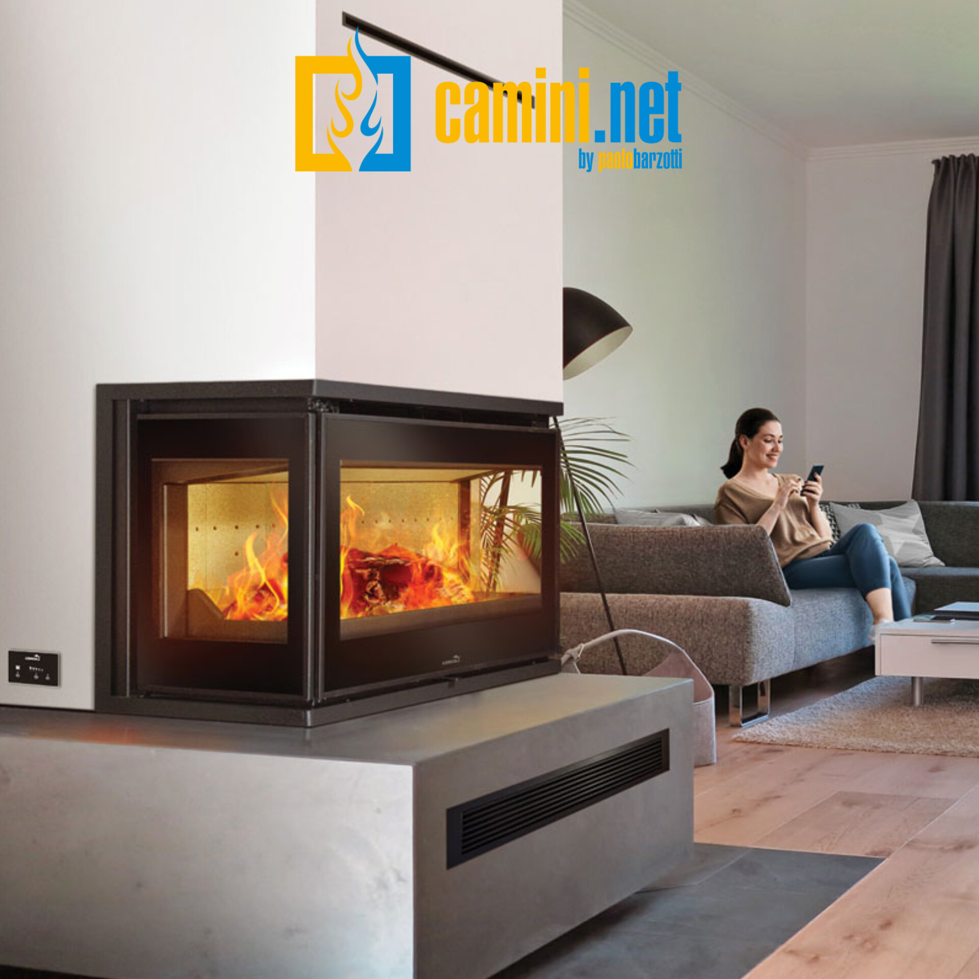 Questo inserto è provvisto di un ampio vetro frontale, che garantisce una visione di fiamma ampia. La struttura realizzata in acciaio ospita una camera di combustione realizzata in vermiculite, che permette di raggiungere una potenza nominale di 7,0 kW. L’altezza ridotta di questo inserto, appena 49 cm, consente di adattarlo a qualsiasi struttura esistente, anche grazie ai suoi piedini regolabili. Nella parte posteriore dell’inserto trova spazio un potente motore dedicato alla ventilazione, che può essere scollegato all’occorrenza. L’inserto è ermetico ed attinge all’aria esterno attraverso la presa d’aria posizionata sonno all’inserto (optional adattatore per presa aria posteriore). Come optional è disponibile un kit di rivestimento della camera di combustione in ghisa.