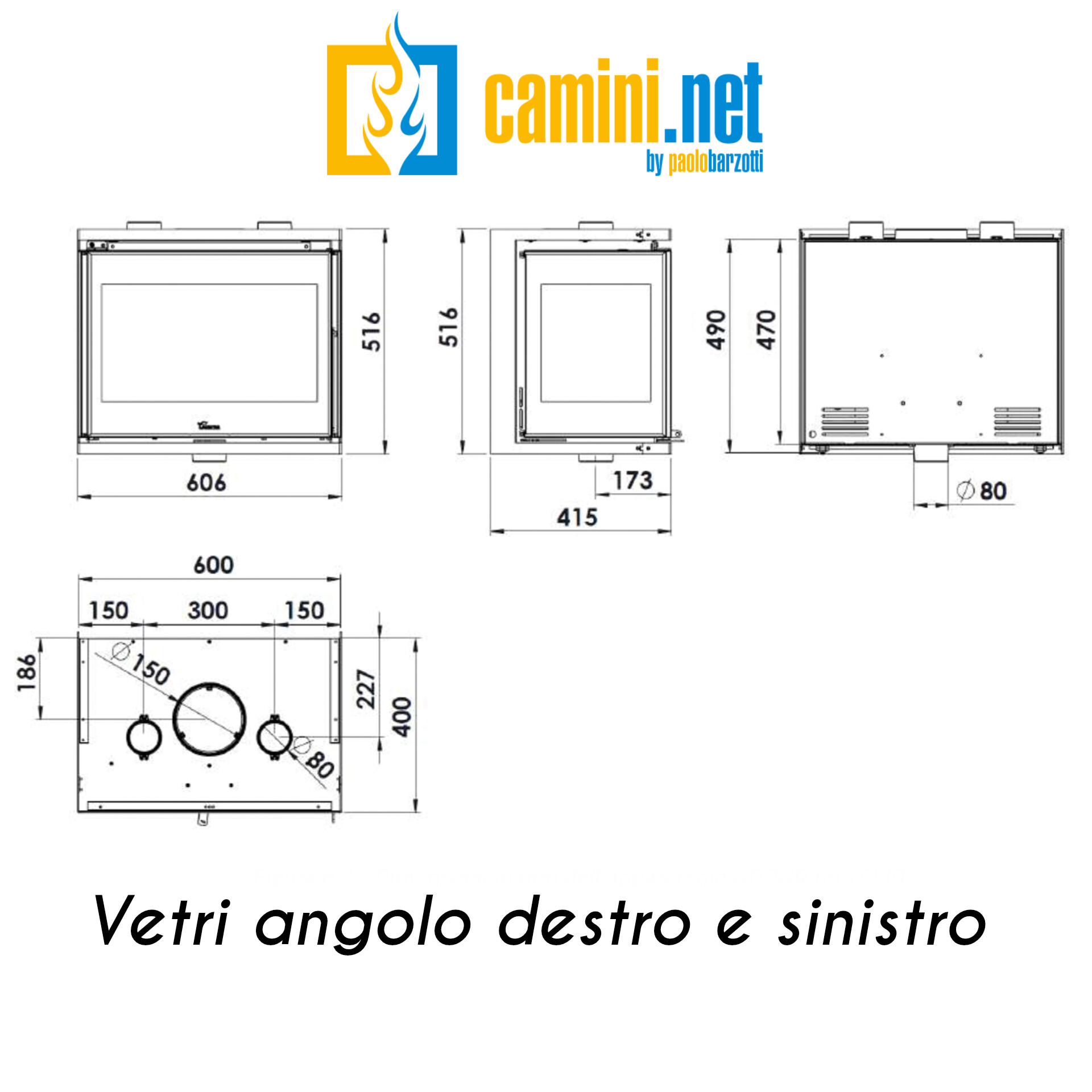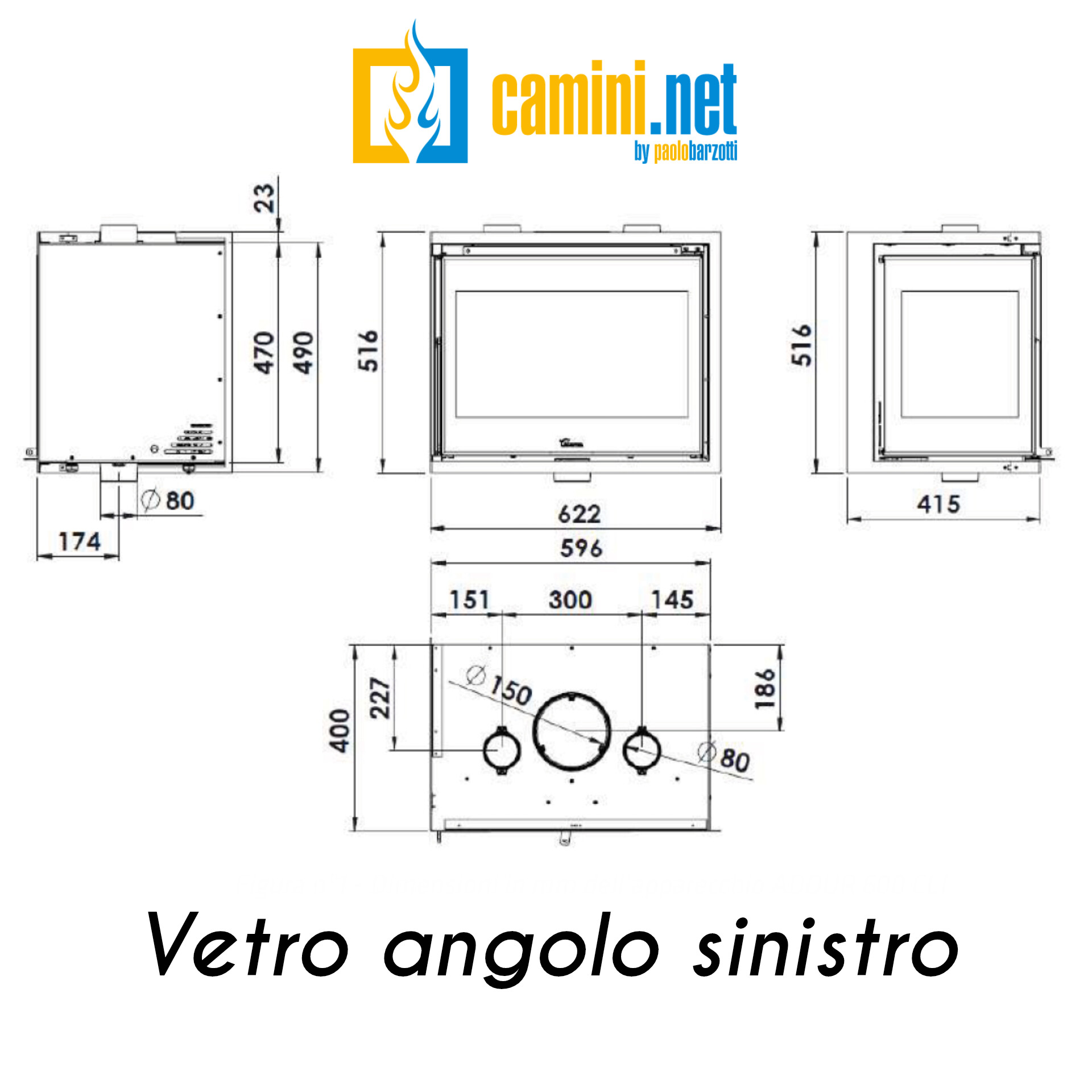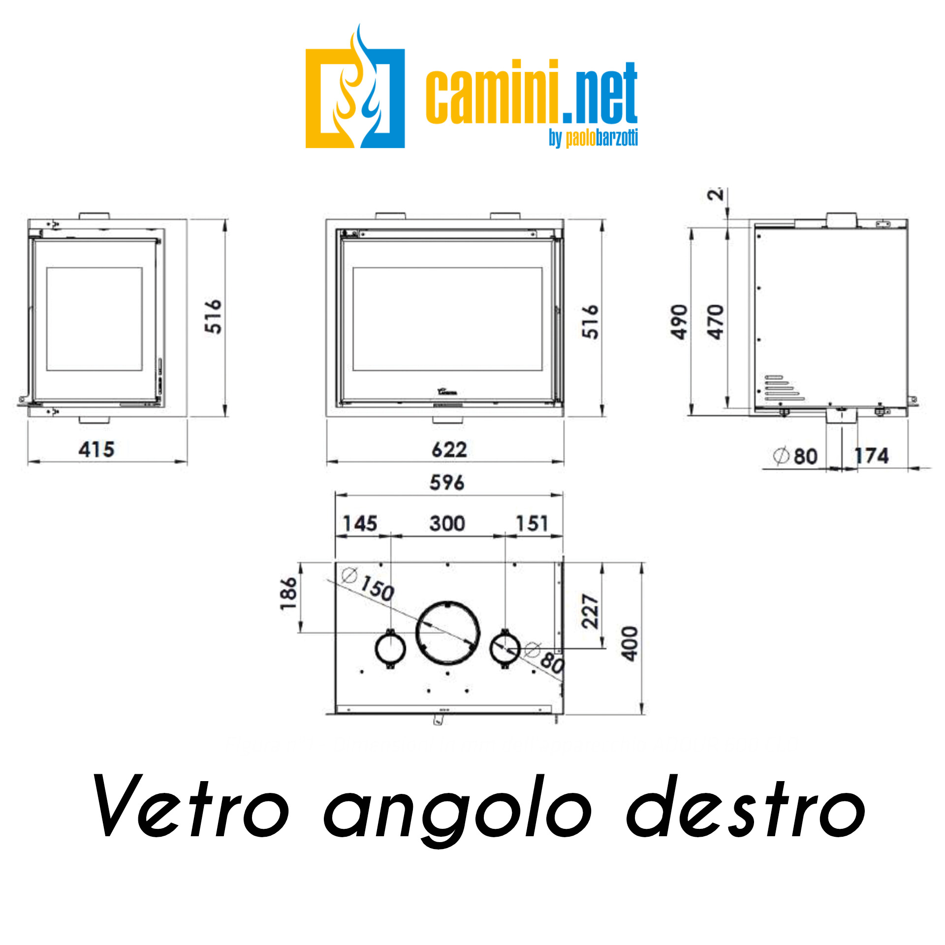 L’inserto a legna Adour 60 è disponibile in 3 versioni: – Con vetro angolare a sinistra, – Con vetro angolare a destra, – Con vetri angolari a destra e a sinistra. Questo inserto è provvisto di un ampio vetro frontale, che garantisce una visione di fiamma ampia. La struttura realizzata in acciaio ospita una camera di combustione realizzata in vermiculite, che permette di raggiungere una potenza nominale di 7,0 kW. L’altezza ridotta di questo inserto, appena 49 cm, consente di adattarlo a qualsiasi struttura esistente, anche grazie ai suoi piedini regolabili. Nella parte posteriore dell’inserto trova spazio un potente motore dedicato alla ventilazione, che può essere scollegato all’occorrenza.
