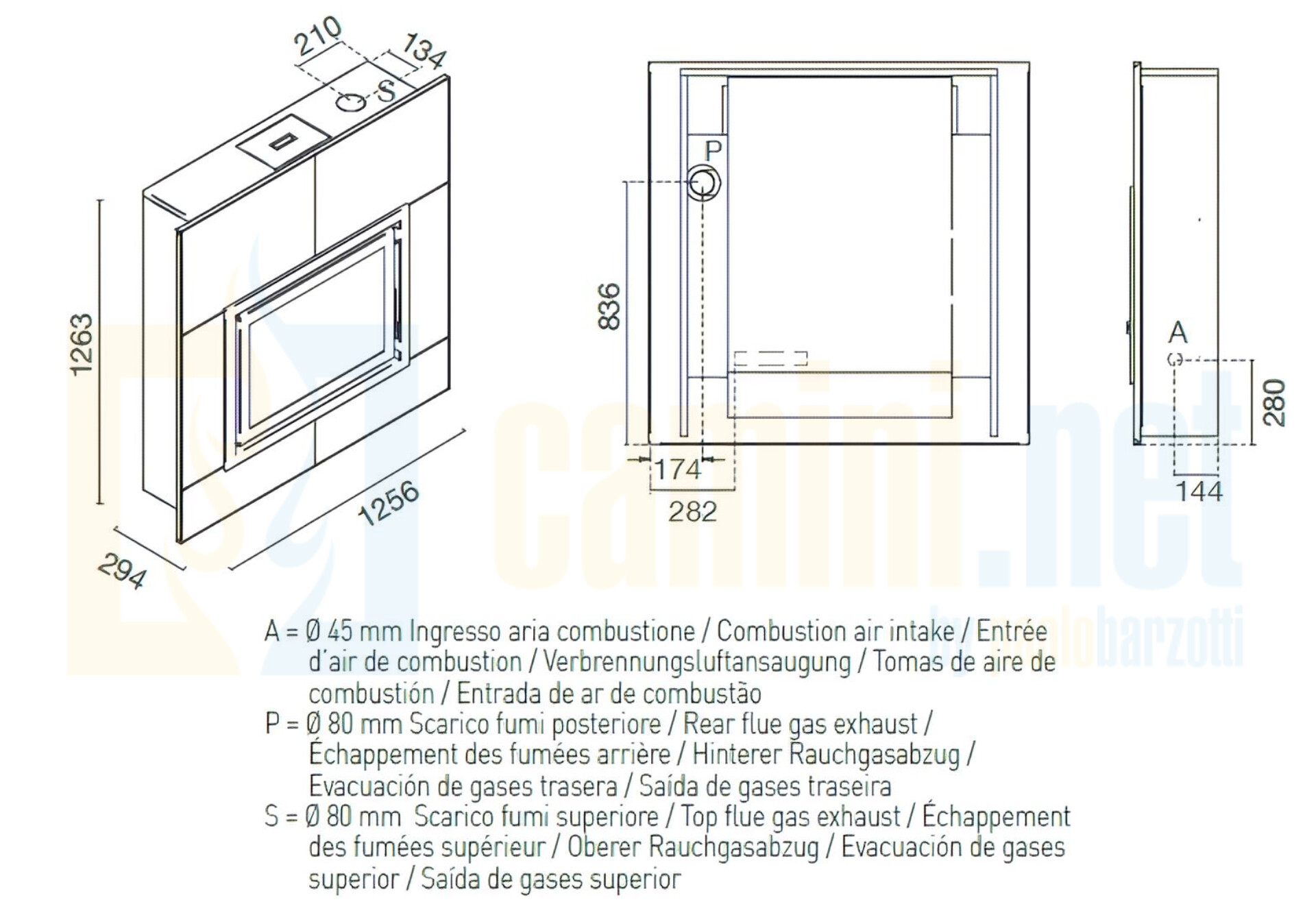 - Grandezza ambiente riscaldabile: 140 – 200 mc