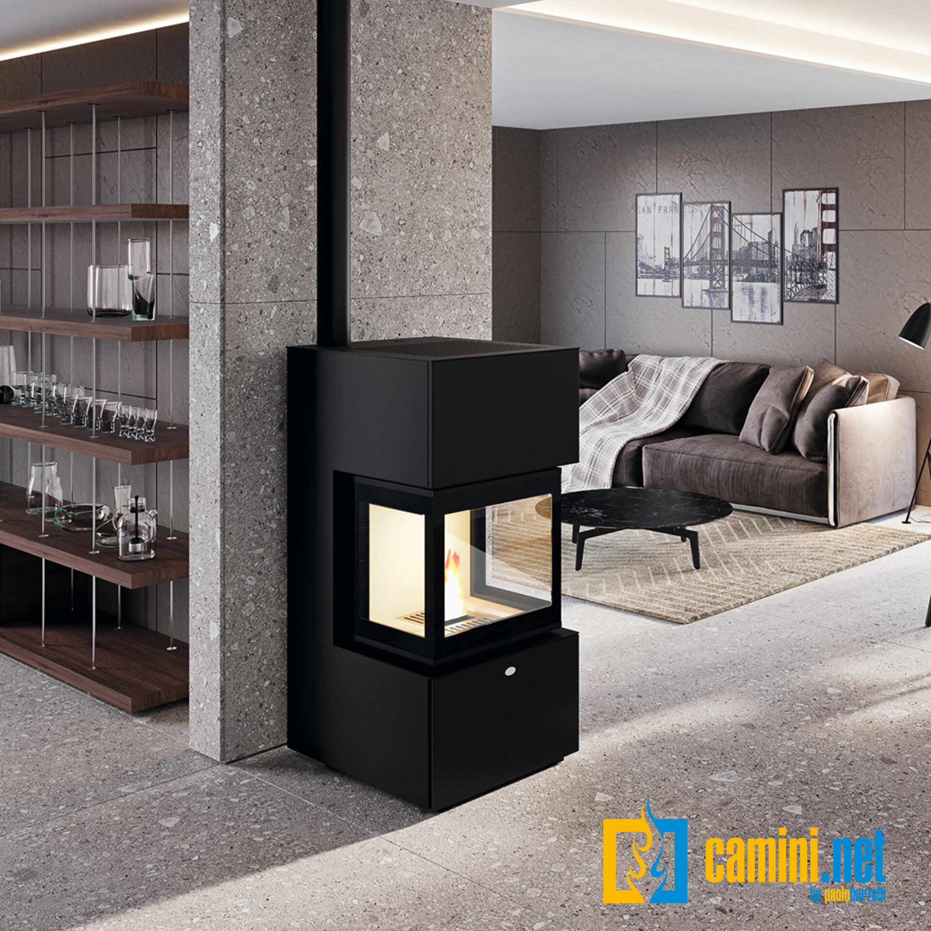 Stufa a pellet Trevisi trifacciale